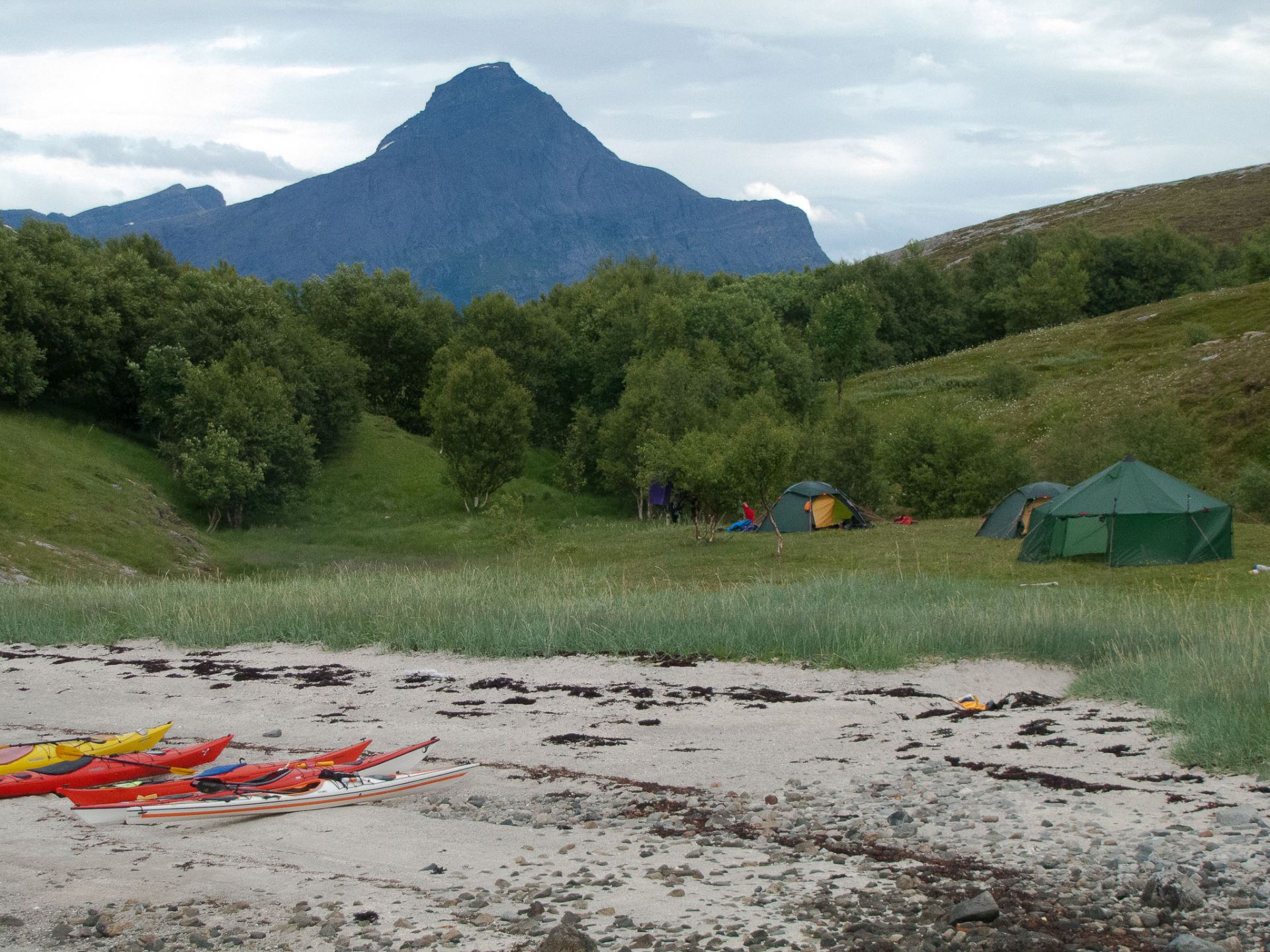 Saarilla näkyy paikallista elämänmenoa ja ripaus historiaa – osa niistä on yhä asuttuja. Merellä liikumme pitkälti luonnon ehdoilla: avomeriosuuksilla tuuli saattaa tuntua selkeämmin, kun taas sisäsaariston reitit tarjoavat suojaa. Siksi aiempi melontakokemus on hyödyksi. Yövymme teltassa saariston keskellä ja nautimme Helgelandille tyypillisestä hiljaisuudesta ja avaruudesta.