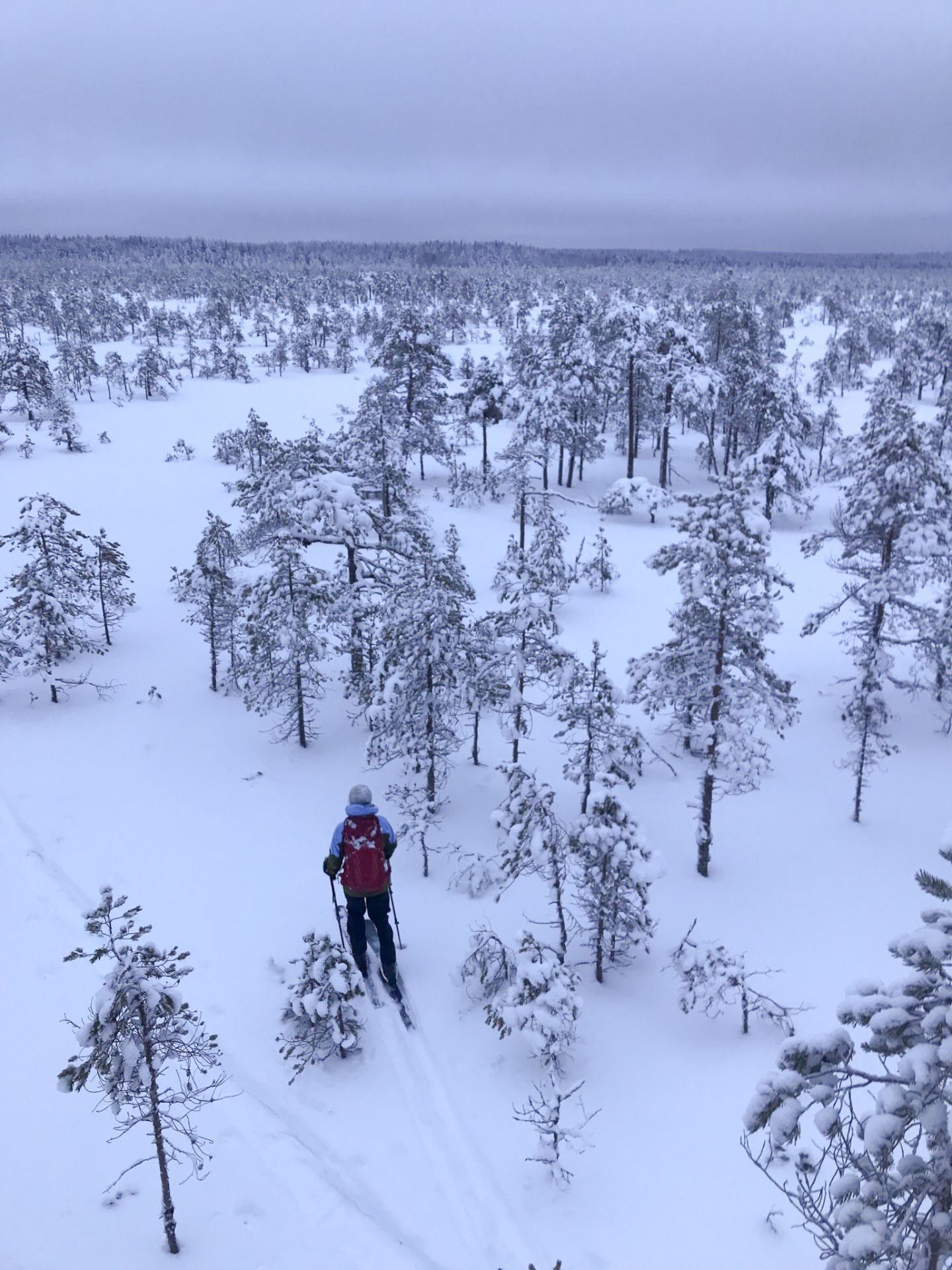 Liukulumikenkäilyä kansallispuiston metsissä, soilla ja kallioilla