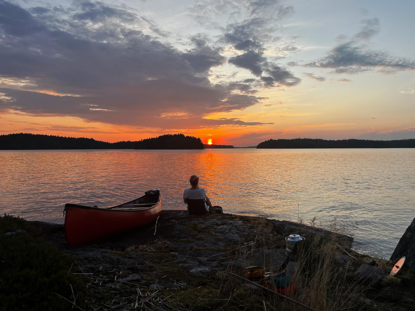 As you paddle across open water or weave between islands, you’ll experience the vastness of the landscape. In the evenings, Koitere’s sunsets stretch wide across the horizon, bathing everything in warm orange and pink light.